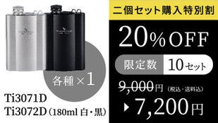 【超早割20%OFF】チタン製ヒップフラスコ 白180ml 黒180mlセット
