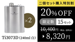 【超早割20%OFF】チタン製ヒップフラスコ 白240ml×2個セット