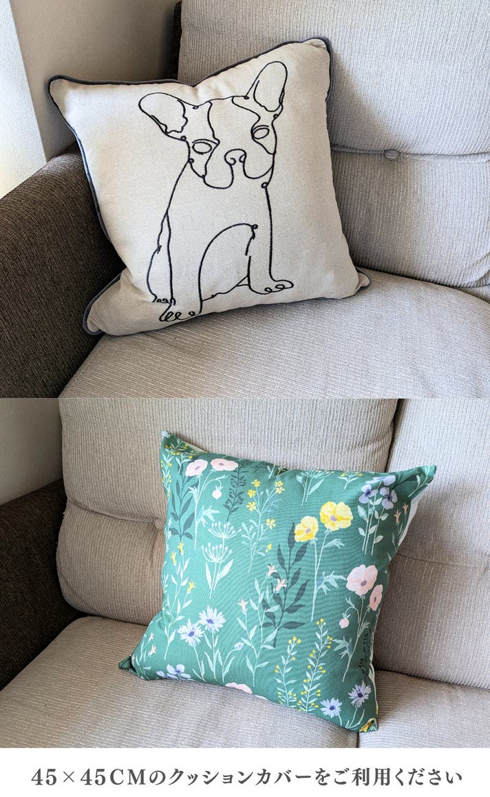 市販のクッションカバーが使えます