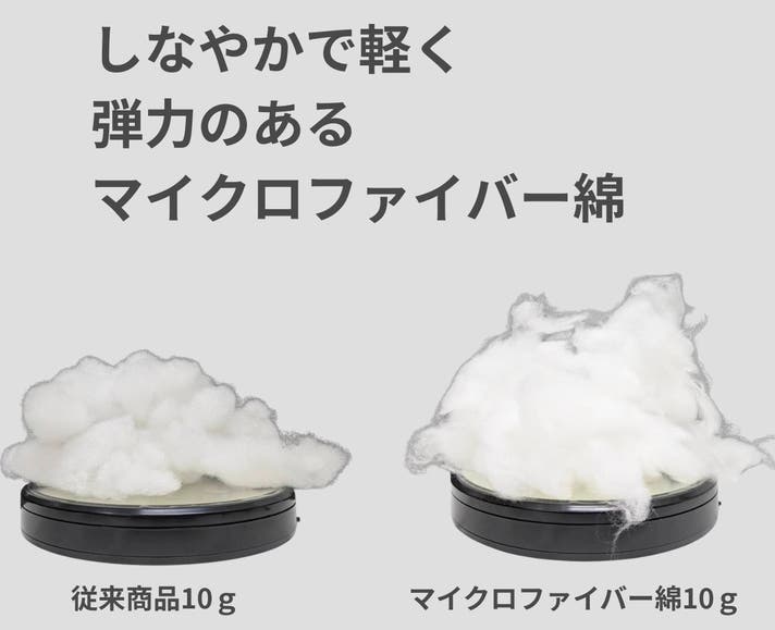 繊維と繊維の間に空気を含むことができるマイクロファイバー綿は羽毛のような使い心地。軽いのにふんわりして暖かく包み込みます。本商品にはたっぷりと650g使用しております。