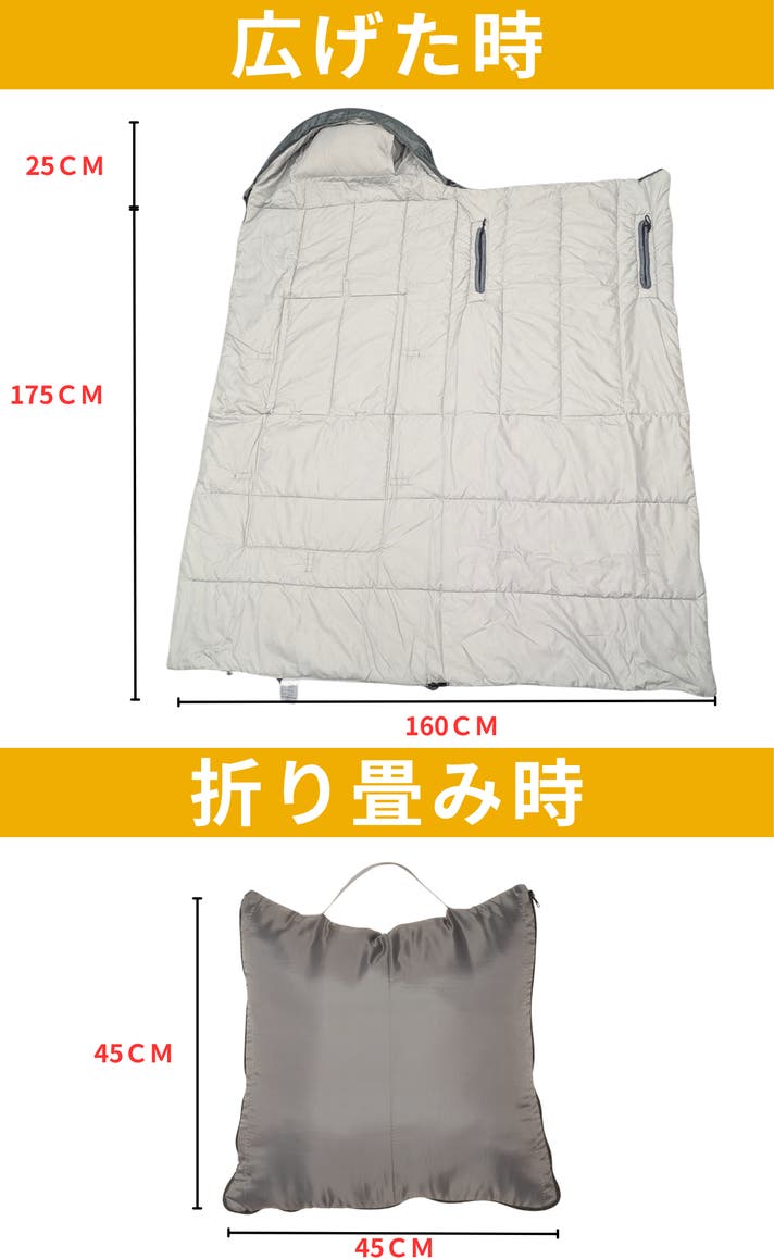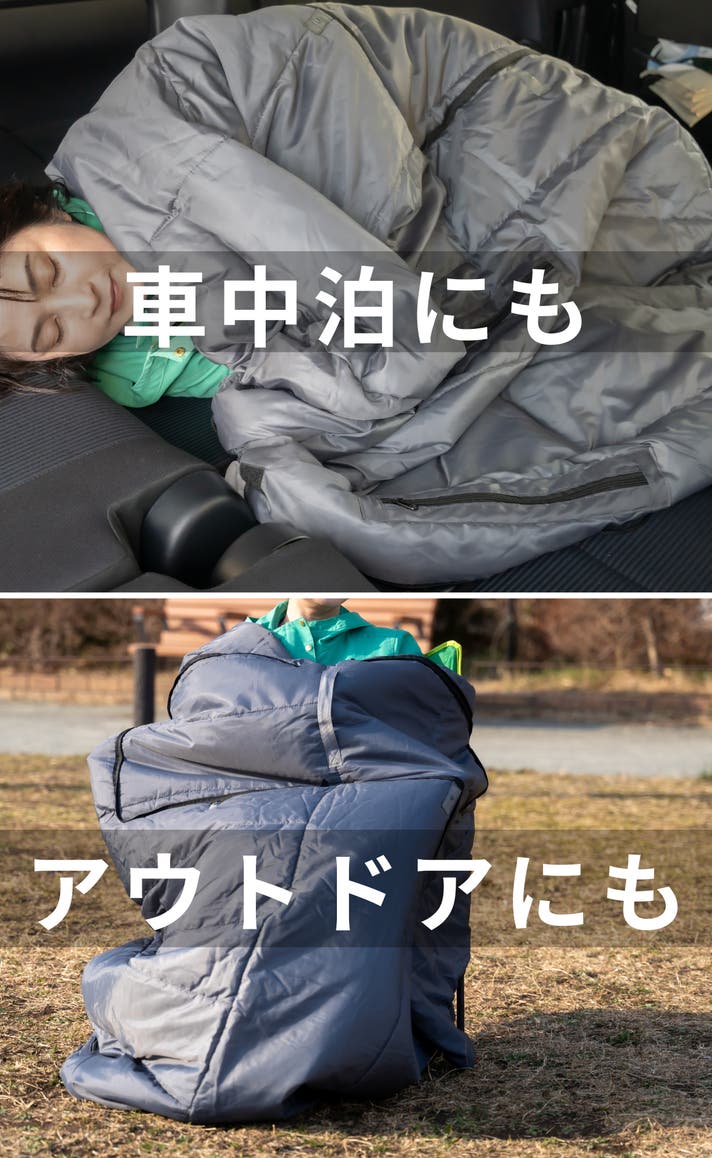 - 寝袋だけでなく着替えやカーペット代わり、車中泊やアウトドアにも多用途に使えて便利