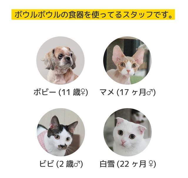 ハローボウルはウェットフードが食器の内側の角につかないようにウェットフード用丸いボウルを製作しています。
