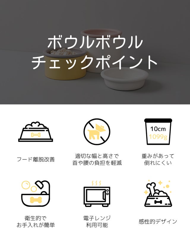 清潔な環境のために、ボウルボウルはペットがフードをこぼさないように食べられるBOWLの仕組みが必要だと考えました。