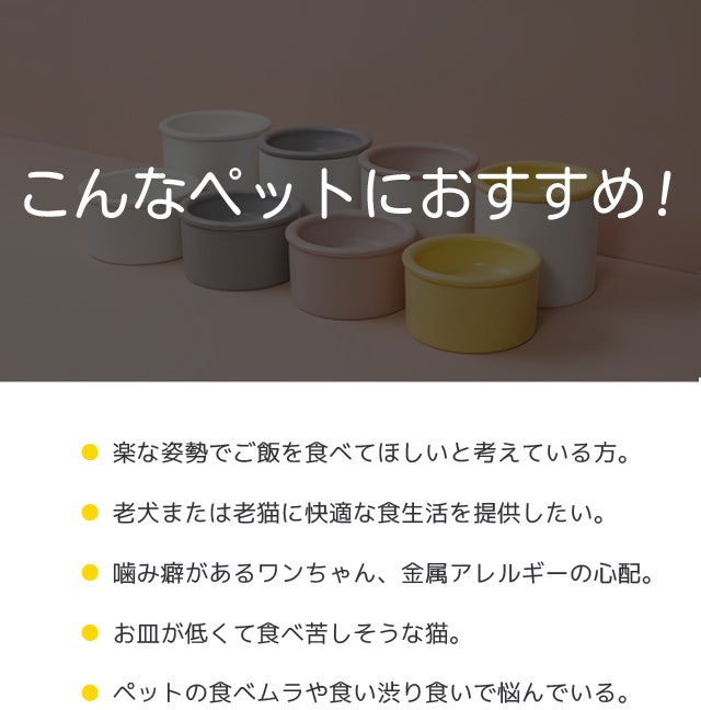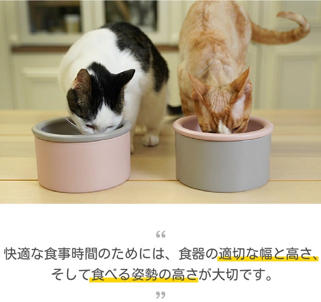 床に置いたままの食事、辛そうと思ったことありませんか?前足を曲げた状態で重心が前かがみになって、耳や毛にもフードがついてしまう…。低い位置にお皿を置いておくとお皿をひっくり返すこともあります。