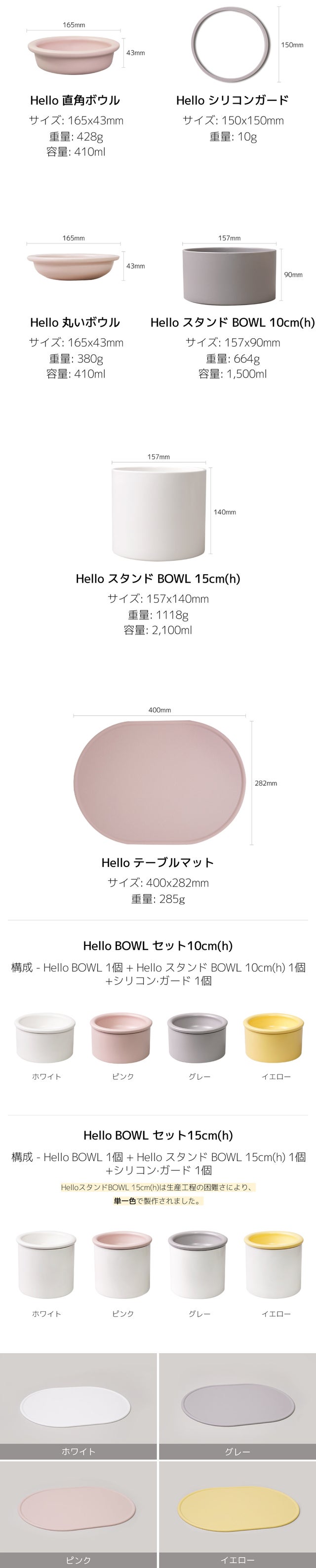 (ただし、ハローボウル15cmステンドボウルはカラー釉薬の流れなどの生産問題のため、ホワイトのみ。)