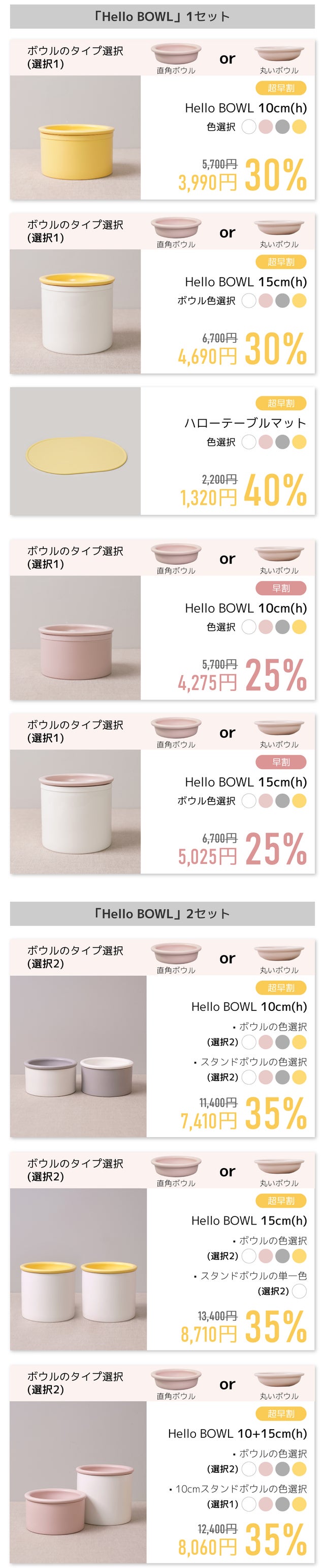 ※ボウルは4色(ホワイト、グレー、ピンク、イエロー)から二つお選びいただけます。