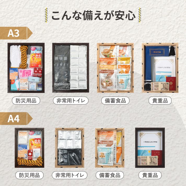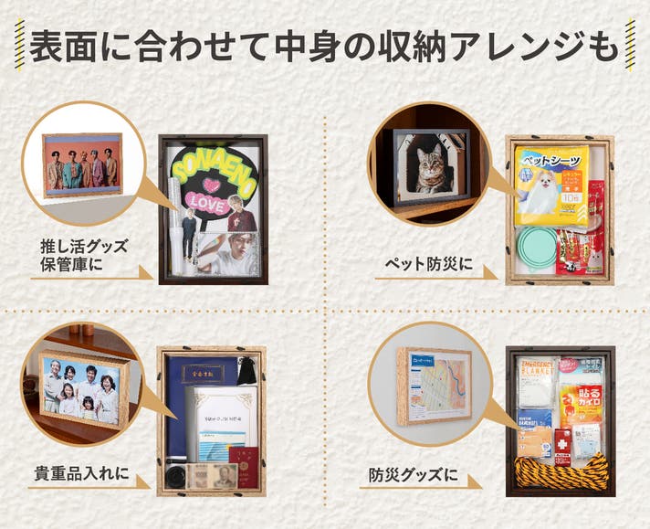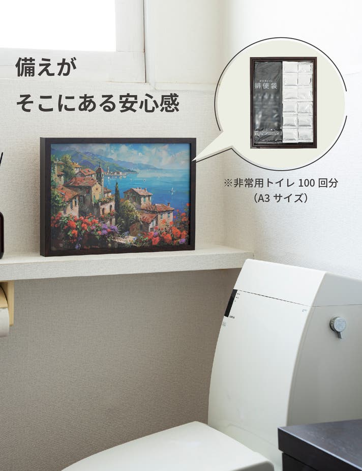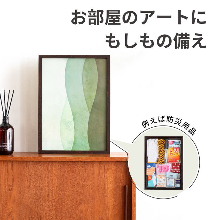 - 日常はアート、防災グッズ/貴重品/非常用トイレ(最大100回分)を備蓄できる防災収納フレーム!