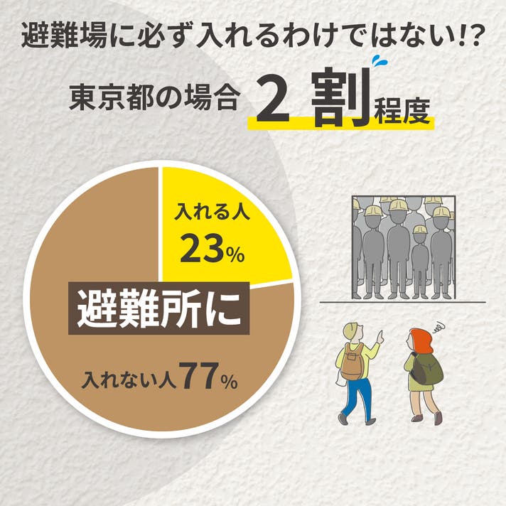 大規模災害時に「避難所」へ行く人よりも、「自宅で在宅避難」をする人の方が圧倒的に多いということを、ご存じでしょうか? 災害が生じたら「避難所」へ行けばなんとかなる…と思っていませんか?大地震による火災や津波、大雨による洪水や土砂災害など、「命を守る」ための「避難場所」は、全ての住民分が確保されていますが、命を守った後に生活をするための避難所の定員は、かなり少ないのです。