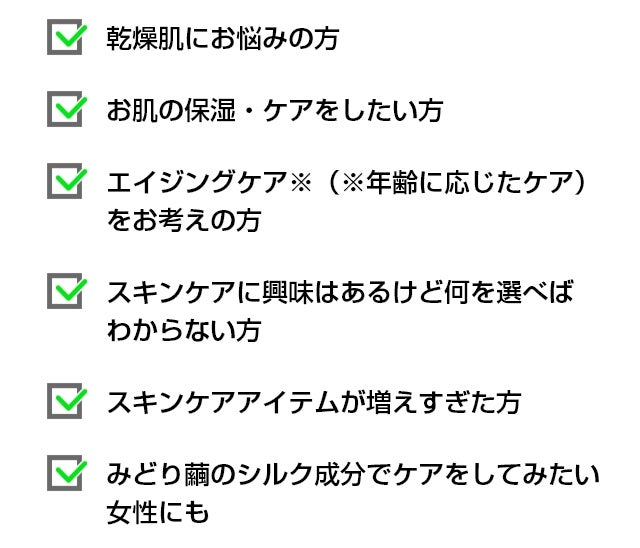 - 「みどり繭」シルク成分配合オールインワンジェルでエイジングケア!* (*年齢に応じたケア)