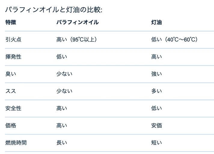 炎の雰囲気や使い勝手、安全性を考慮して「パラフィンオイル」を使用することをオススメ します。