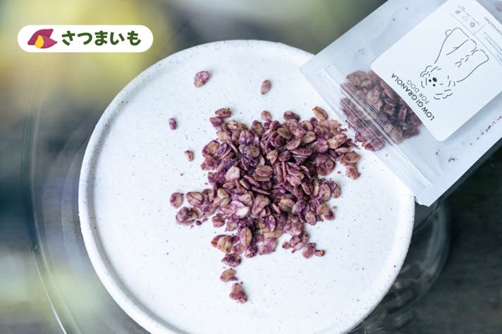 そして今回、その想いを家族の一員である愛犬にも届けたいと考えました。栄養士監修のもと、添加物を一切使わず、“愛犬のためのグラノーラ”を開発。しかも、毎日続けられる価格で。