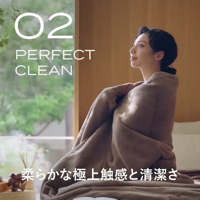 - ムレ難さ、抗菌よりも強い制菌性の清潔さ。極上の肌触りで、いつまでも包まっていたい快適さ
