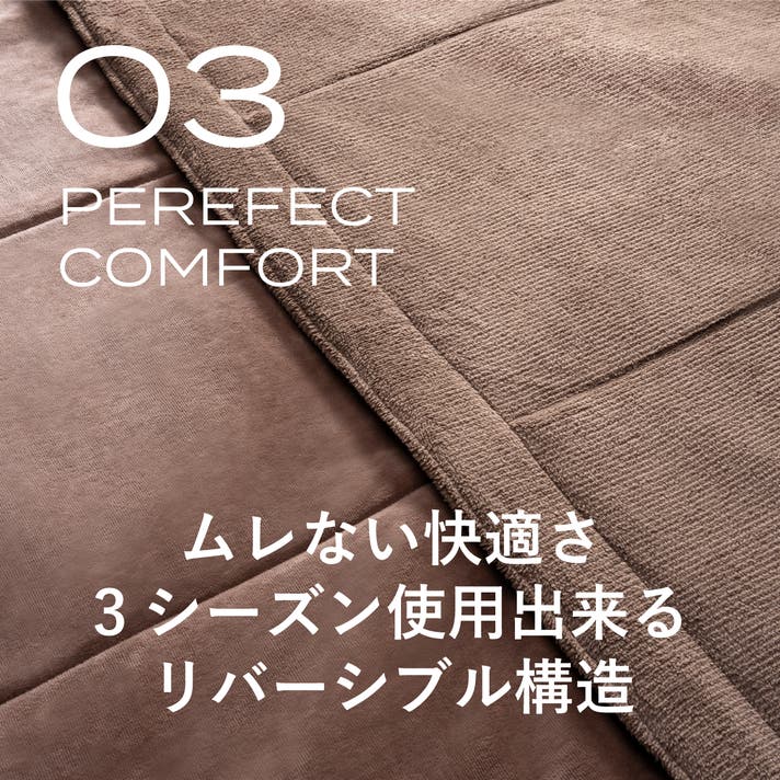 - 冬向けのカシミヤタッチ、秋春向けのコットンブランで、秋冬春の長期間使用できるリバーシブル構造