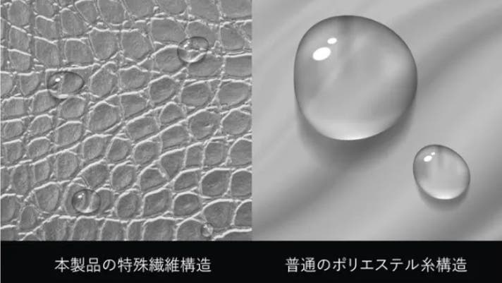カシミヤやウールは、うろこ状の特殊な繊維構造(スケール)で吸湿放湿性をもたらします。そのスケールと同じような繊維構造を一から開発。その結果、高い吸湿放湿性でムレない環境を実現。さらに、その湿気を熱に変換して、極上の暖かさを発揮します。