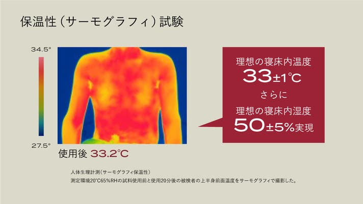 理想の寝床内環境である温度33±1℃/湿度50±5%をしっかりキープするから快適睡眠を実現します。