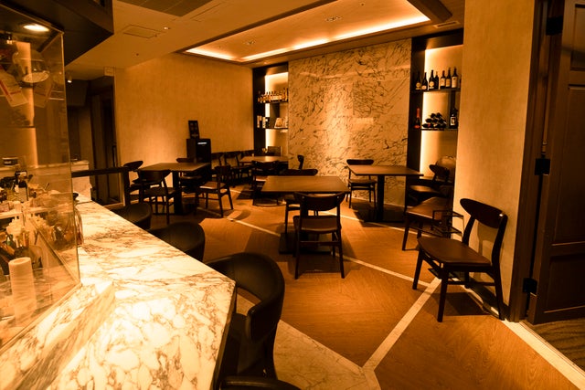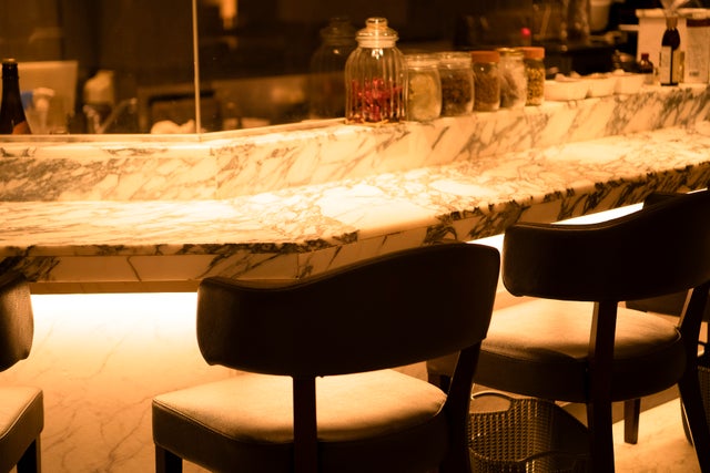 カウンターには大理石が用いられ、重厚感ある雰囲気。