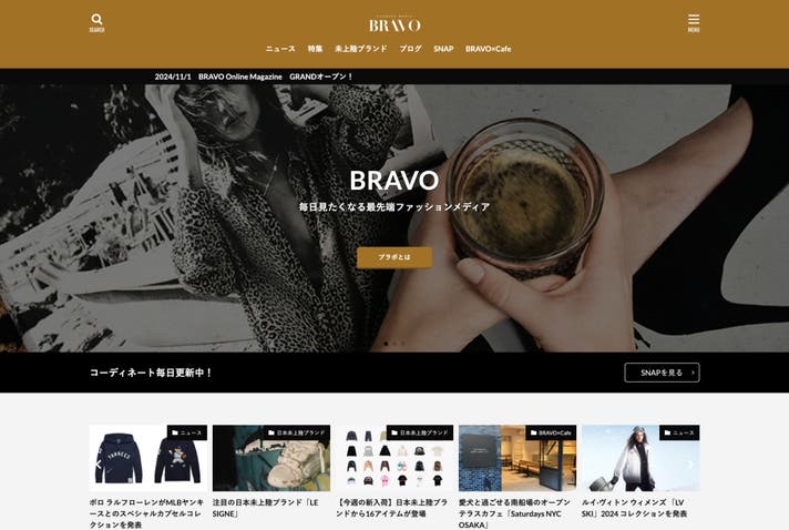 BRANDVOXでは、ファッションに特化した自社メディアサイト「BRAVO(ブラボ)」を運営しています。BRAVOは、国内外のブランドやカルチャーにまつわる特集記事、インタビュー、スタイリング提案などを発信する主観型ファッションメディアです。