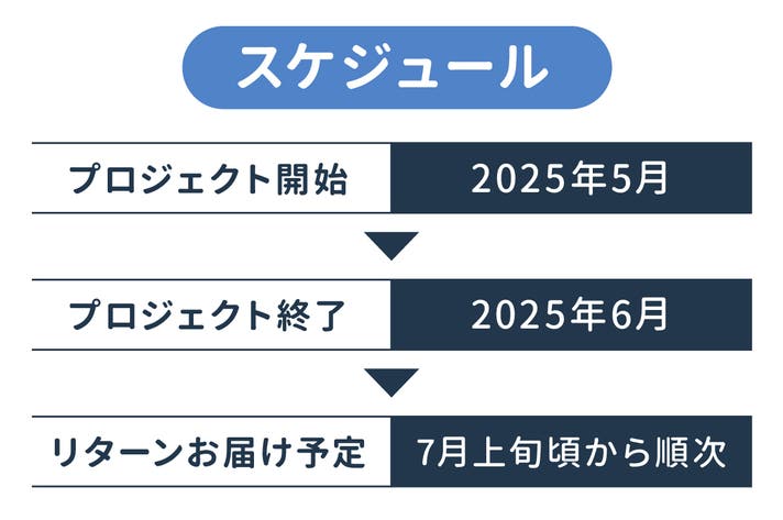 このプロジェクトはAll in型です。目標金額の達成に関わらず、プロジェクト終了日の2025年06月29日までに支払いを完了した時点で購入が成立します。