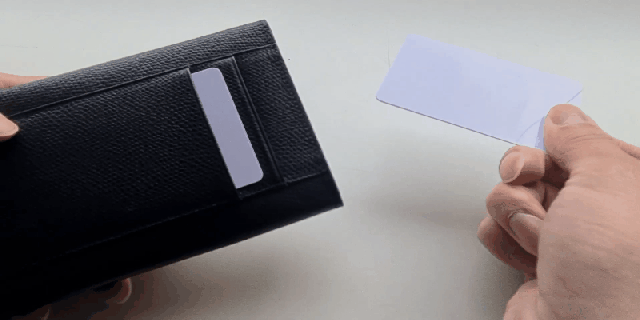 財布の紛失を防ぐタグを収納するポケットを用意しました。