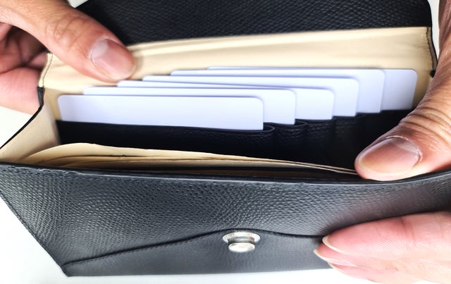 蛇腹式にすることでカードが重なる面積を減らしています。