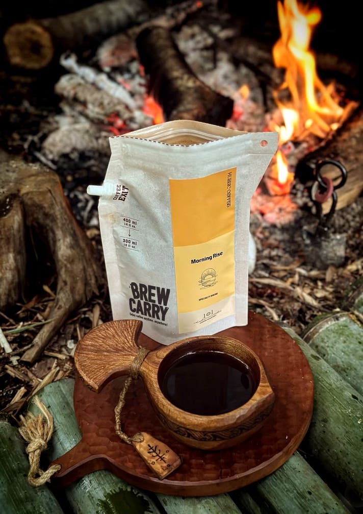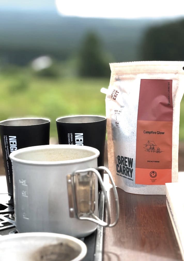 BREW CARRYは、特別な道具がなくても 自然の中で本格コーヒーを楽しめる“持ち歩けるドリップコーヒー”。キャンプでも、スポーツでも。