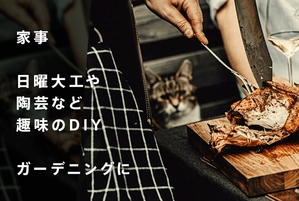 釘やトンカチ、メジャーなど多彩な道具を使い分ける日曜大工などのDIYでも、あなたの作業をしっかりサポート。