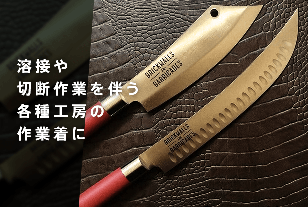 本革は布に比べ熱を通さず火に燃えにくく、しかも刃物で切れ難いという特徴を持ち合わせているので、溶接や切断などの作業着などにも使われています。
