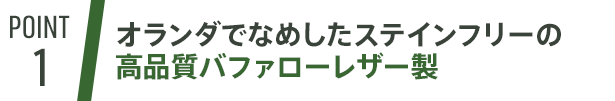 このバファローレザーは、オランダの革職人がわずか2~3mの厚さになるまで一枚一枚丁寧になめしたハンドクラフト。