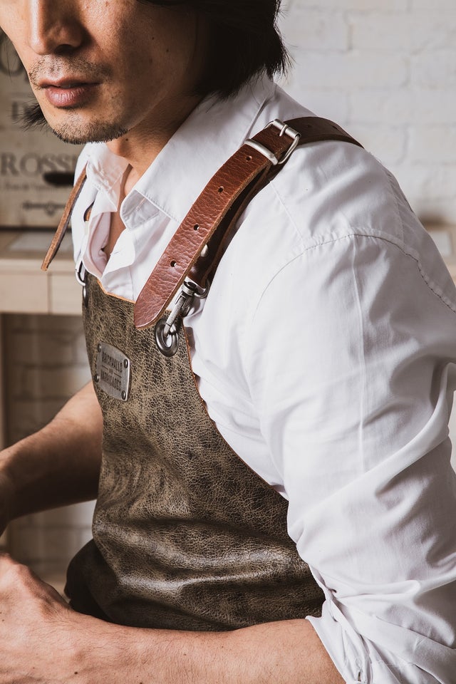 機能的でファッション性のある本革エプロンをお試しください。