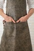 本革エプロンは高級バファローレザーを極限まで薄くなめし、布のような軽さと柔らかさ、動きやすさを実現。
