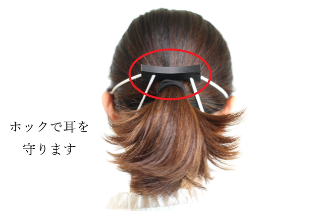 後ろでマスクの紐をホックすることで耳に紐が掛かりません。