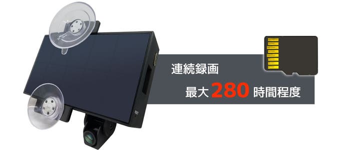 最大512GBのmicroSDカードまで対応しており、大容量のmicroSDカードのご使用で約280時間もの長時間録画が可能です。(512GBのmicroSDカード使用時)