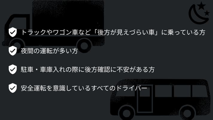 ・こちらの商品は補助装置です。必ず目視で安全確認してご利用ください。