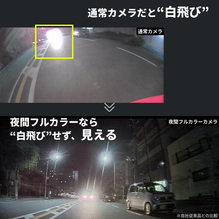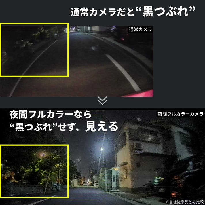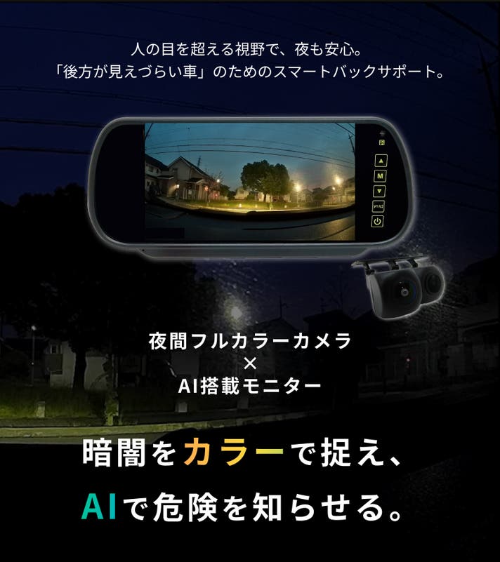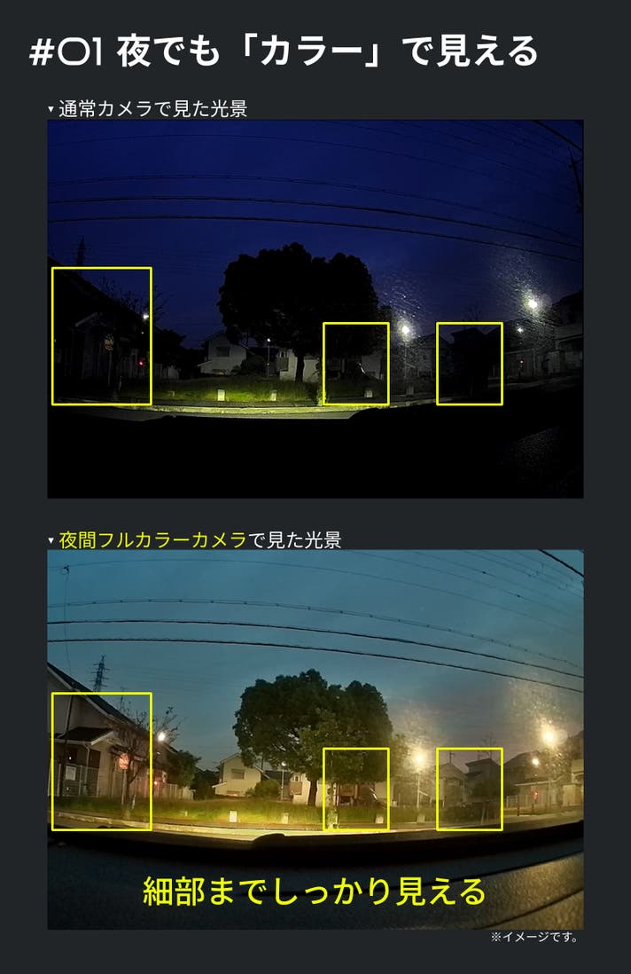 - 夜間フルカラーカメラで、暗い夜道でも白飛びや黒つぶれせず、しっかり“見える”