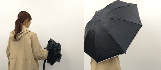 通常の傘は濡れた部分が外側になりますが、逆折りたたみ式にすることで濡れた部分を内側に。雨粒を内側に閉じ込めてくれます。