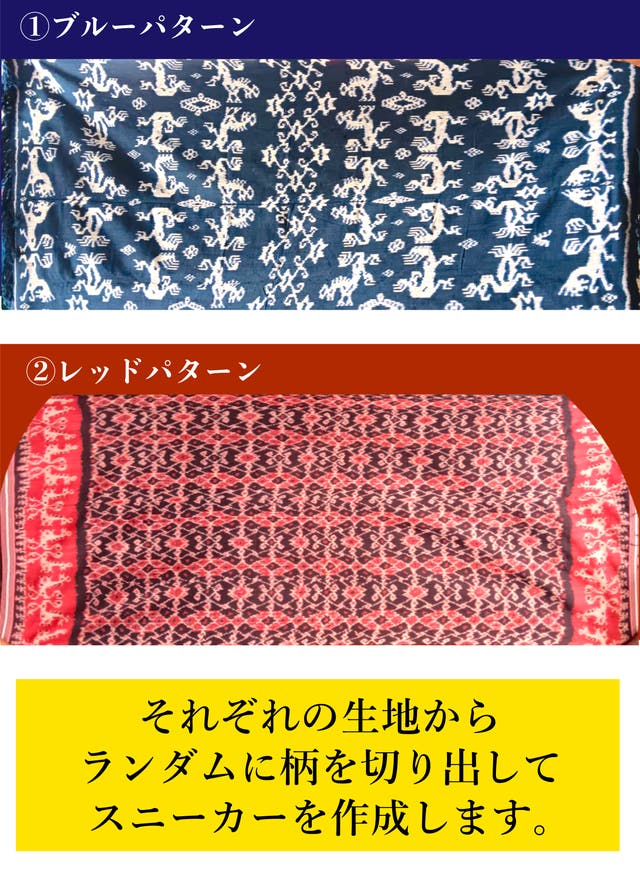 【並行輸入品が発生する可能性があります。】 正規以外での個人輸入等は、完全に防ぐことができない場合がございます旨、予めご了承のほどお願いいたします。 ※並行輸入品は正規代理店による製品保証を受けることができません。 また、正規代理店を通じて購入することで、日本国内での流通に必要な各種手続きや、関税の適切な処理が担保されます。 【スリッポンタイプは柄や色はお選びいただけません。】 ・手作りで染織されたイカット素材から切り出してパターンを作成するため、どんな柄がリターンされるかは配送されるまでわかりません。お楽しみにお待ちいただけると幸いです。 ※ハイカットタイプはインディゴブルー・テラコッタレッドの2色からお選びいただけます。 【手作業で作られているため、風合いなどが異なる可能性があります。】 ・テヌンイカット素材は職人の息がかかった全て手作業で作られた素材です。風合いや染めの濃淡などに個別差がありますが、世界に2つとない独自商品としてお楽しみいただけると幸いです。 【本文中に記載させていただいたスケジュールは、あくまでプロジェクト公開時点の予定です。】 ・応援購入の性質上、配送遅延のおそれがございます。 ・原則として、配送遅延に伴う応援購入のキャンセルはできませんが、リターン配送予定月から 6ヶ月 を超えた場合には、希望者に限りキャンセルにて対応させていただきます。 【返品・返金について】 ・初期不良以外に関する返品・返金はお受けいたしかねます。 ・住所の誤りなどにより、サポーター様都合によりお届けができず弊社に戻ってきてしまった場合、着払いでの再配送となりますことご了承ください。また、その場合は配送期間が想定よりも遅くなる可能性があります。