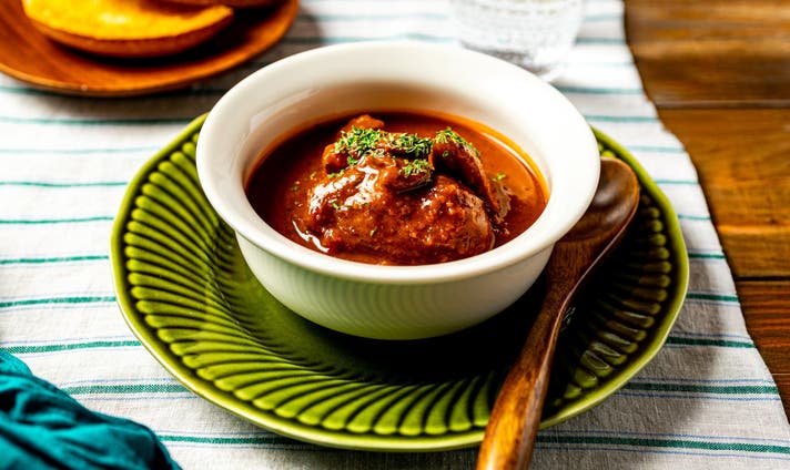 赤ワインやデーツ、乾しいたけなども加え、甘み・旨味・酸味のバランスにこだわった本格的な味わいをお楽しみいただけます。