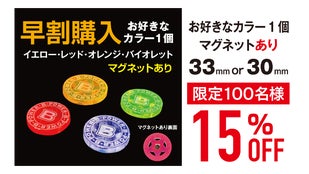 【超早割】マグネット付き33mm 4色1セット×1 40%OFF