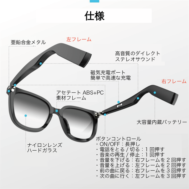 - Bluetooth 5.0 オーディオグラスは通話、音楽再生、動画視聴時の音声再生が可能!
