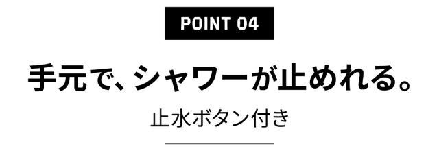 本製品は、手元のボタンで簡単にシャワーを止められます。水の出しっぱなしを防ぐことができ、水道代だけでなくガス代などの節約に役立ちます!