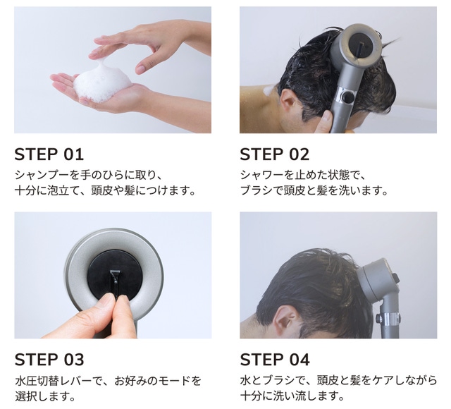 本製品は、水圧&ブラシによって、頭皮の奥まで汚れをしっかり掻き出せる、まさに新感覚のシャワーヘッドです。