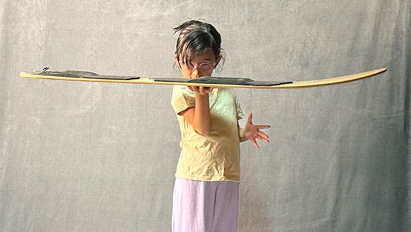 雪板(ゆきいた)は、ふわふわの新雪の上を“サーフィン”するように滑り降りる、日本発祥の遊びです。