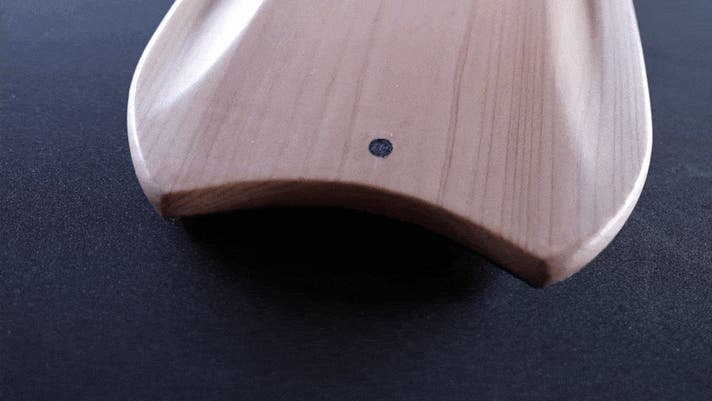 そのネーミングの通り、軽さの限界に挑戦した 一枚板の曲木成型。