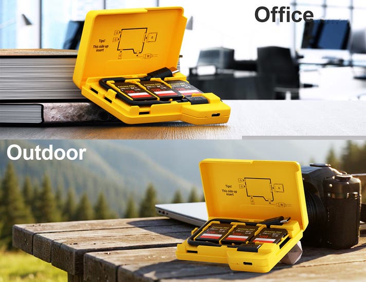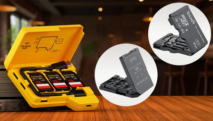- コンパクトな防塵設計ケースにSDカード4枚、microSDカード11枚、USBケーブルまで収納
