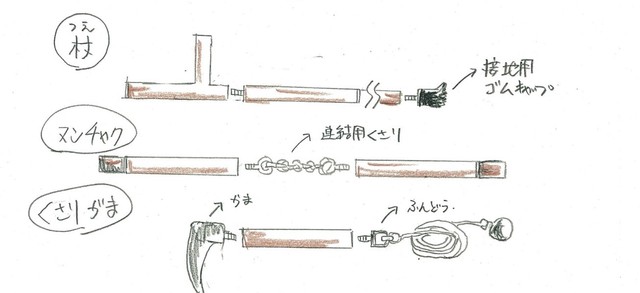 武道の練習につかう杖(じょう)を分割して持ち運びしやすくしました。