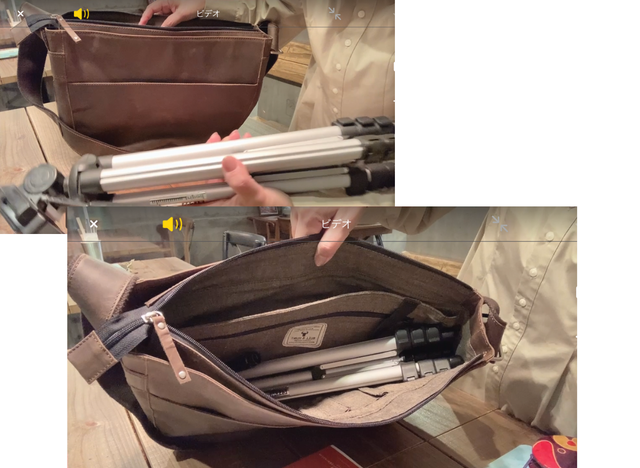 大きなカメラの三脚もらくらく入ります。