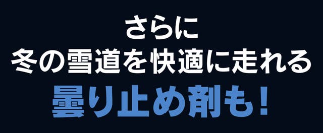 左側はなにも使用していない部分、右側がアンチフォグを使用した部分です。アンチフォグを使用すれば走行中も快適に運転することができます。