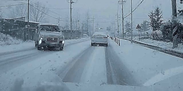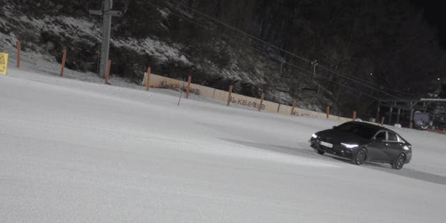 ※江原道太白市直線トラックで雪の路面でのブレーキングテストを行いました。