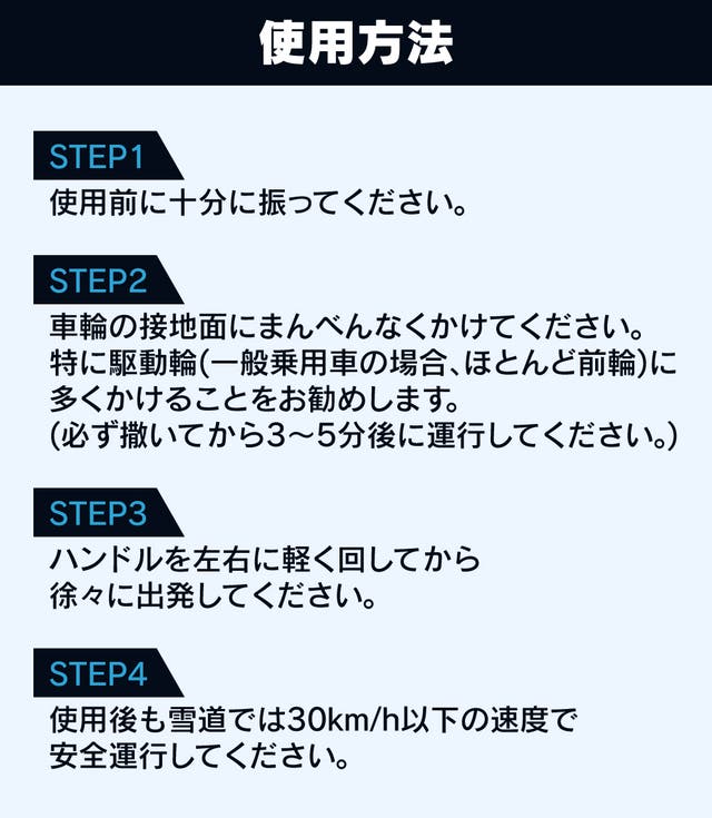 ・本製品は予期せぬ雪道で迅速に使用する応急処置用製品です。