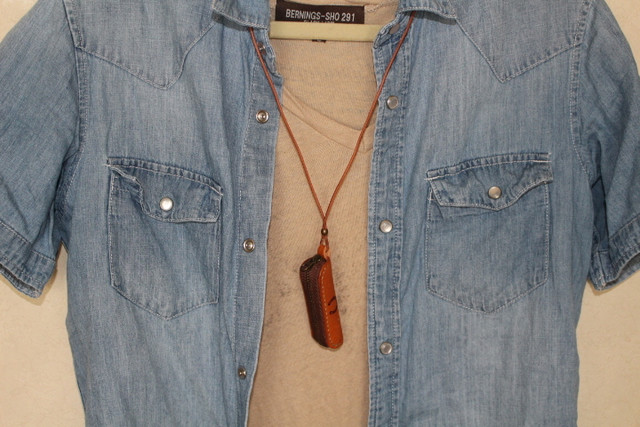 馬と蹄鉄の焼き印を捺した革紐付きリップケース、ハンコ入れとしても◎